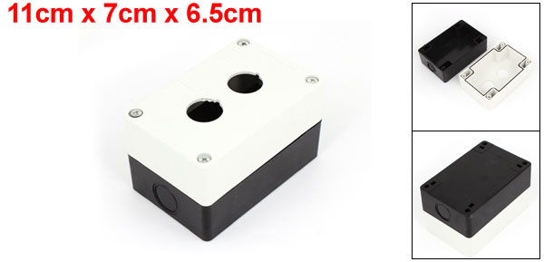 Product Name Control Box Material Plastic Color Black, White Location Switch Number 2 Box Total Size 11 x 7 x 6.5cm / 4.3" x 2.7" x 2.5"(L*W*T) Fit for Round Switch Head Diameter 22mm/ 0.87" Net Weight 146g Package Content 1 x Control Box