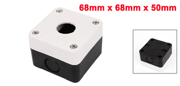 DetailsBlack White Plastic Waterproof Sealed Electric Junction Box 68mm x 68mm x 50mm  Main Color Black,White Brand DMiotech Net Weight 75g Country of Manufacture CHINA Package Content 1 x Junction Box Fixing Hole Diameter 8mm/ 0.3" Mounted Type Surface Mounted Material Plastic Total Size 68 x 68 x 50mm/ 2.7" x 2.7" x 2"(L*W*H) Internal Size 63 x 63 x 45mm/ 2.5" x 2.5" x 1.8"(L*W*H)