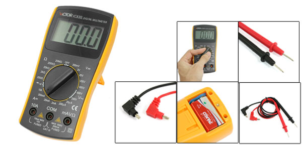Black Yellow VC830L Volt Ampere Ohm Meter Digital Multimeter w 2 Test Leads