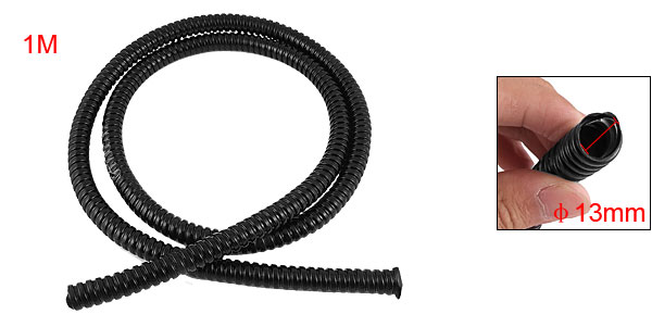 Blk Plastic Covered 13mm Dia Metal Corrugated Tube 1M