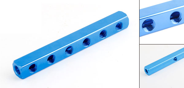 Product Name Manifold Block Threaded Ports Quantity 9 Ports Way 6 Color Blue Material Aluminum Threaded Port Size 1/4"PT Overall Size 18 x 2 x 2cm / 7" x 0.8" x 0.8" (L*W*H) Weight 130g Package 1 x Manifold Block - Reviews