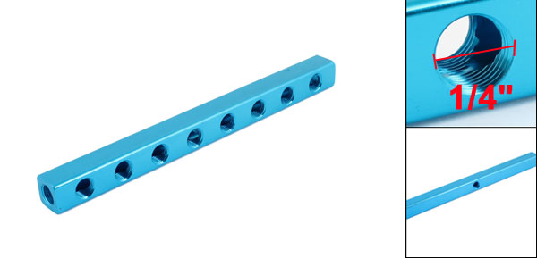Product Name Manifold Block Threaded Ports Quantity 11 Ports Way 8 Color Blue Material Aluminum Threaded Port Size 1/4"PT Overall Size 23.5 x 2 x 2cm / 9.3" x 0.8" x 0.8" (L*W*H) Weight 166g Package 1 x Manifold Block - Reviews