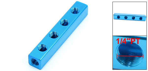 Blue 1/4"PT Thread Aluminum Manifold Block Splitter 4 Way 7 Ports