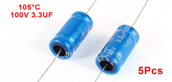 Blue 100V 3.3UF 105 Degree Axial Lead Electrolytic Capacitor 5 Pieces