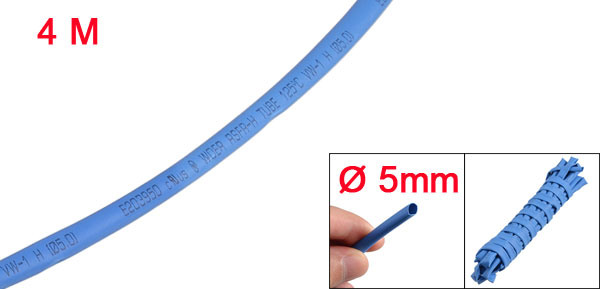 DetailsBlue 13.1Ft 4M Long 5mm Dia Polyolefin Heat Shrinkable Tube Tubing  Product Name Heat Shrinkable Tube Material Polyolefin Rated Voltage 600V Temperature Level 125°C Flammability VW-1 Diameter 5mm / 0.197" (Before Shrinking) 2.5mm / 0.098" (After Shrinking) Shrink Ratio 2:1 Length (Approx.) 4M / 13.1Ft Color Blue Weight 29g Package Content 1 x Heat Shrinkable Tube