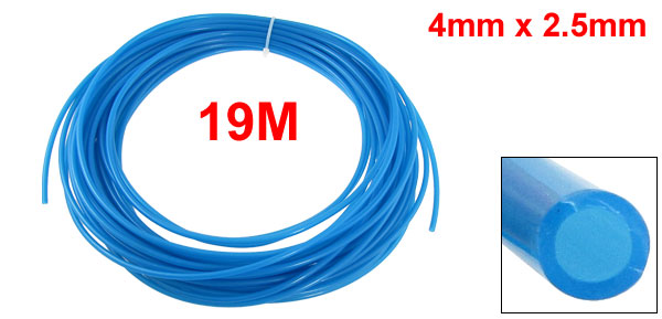 Blue 19 Meters 62.3ft 4mm x 2.5mm Pneumatic Polyurethane Air Hose Tube
