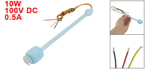 DetailsBlue 22cm Long Water Level Sensor Vertical Liquid Float Switch Fish Tank Pool  Product Name Float Switch Max Contact Rating 10W Max Switching Voltage 100V DC Max Switching Current 0.5A Max Breakdown Voltage 220V DC Max Carry Current 1.0A Max Contact Resistance 100mΩ Temperature Rating -10 ~ +60 °C / 85 °C Float Ball Material PP Float Body Material PP Float Ball Size(Approx) 25 x 26mm / 1" x 1.1"(L*D) Thread Dia(Approx) 9mm / 0.35" Nut Dia(Approx) 14mm / 0.55" Bottom Clip Dia(Approx) 20mm / 0.8" Body Total Length 22cm / 8.6" Cable Length 35cm / 13.8" Color Blue Net Weight 77g Package Content 1 x Float Switch