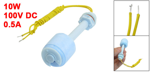 Product Name Float Switch Max Contact Rating 10W Max Switching Voltage 100V DC Max Switching Current 0.5A Max Breakdown Voltage 220V DC Max Carry Current 1.0A Max Contact Resistance 100mΩ Temperature Rating -10 ~ +60 °C / +85 °C Float Ball Material PP Float Body Material PP Float Ball Size(Approx) 25 x 24mm / 1" x 0.94"(L*D) Thread Dia(Approx) 10mm / 0.4" Hex Nut Diameter 14mm / 0.55" Bottom Clip Dia(Approx) 20mm / 0.8" Body Total Length 90mm /3.5" Cable Length 36cm / 14" Color Blue Net Weight 16g Package Content 1 x Float Switch - Reviews