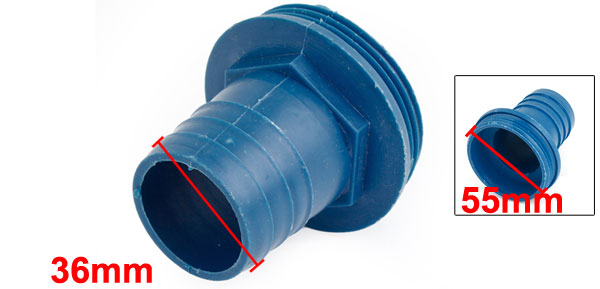 Blue 36mm Dia Water Pump Hose Barb to 55mm Male Thread Coupling Adaptor Fittings