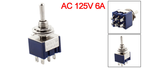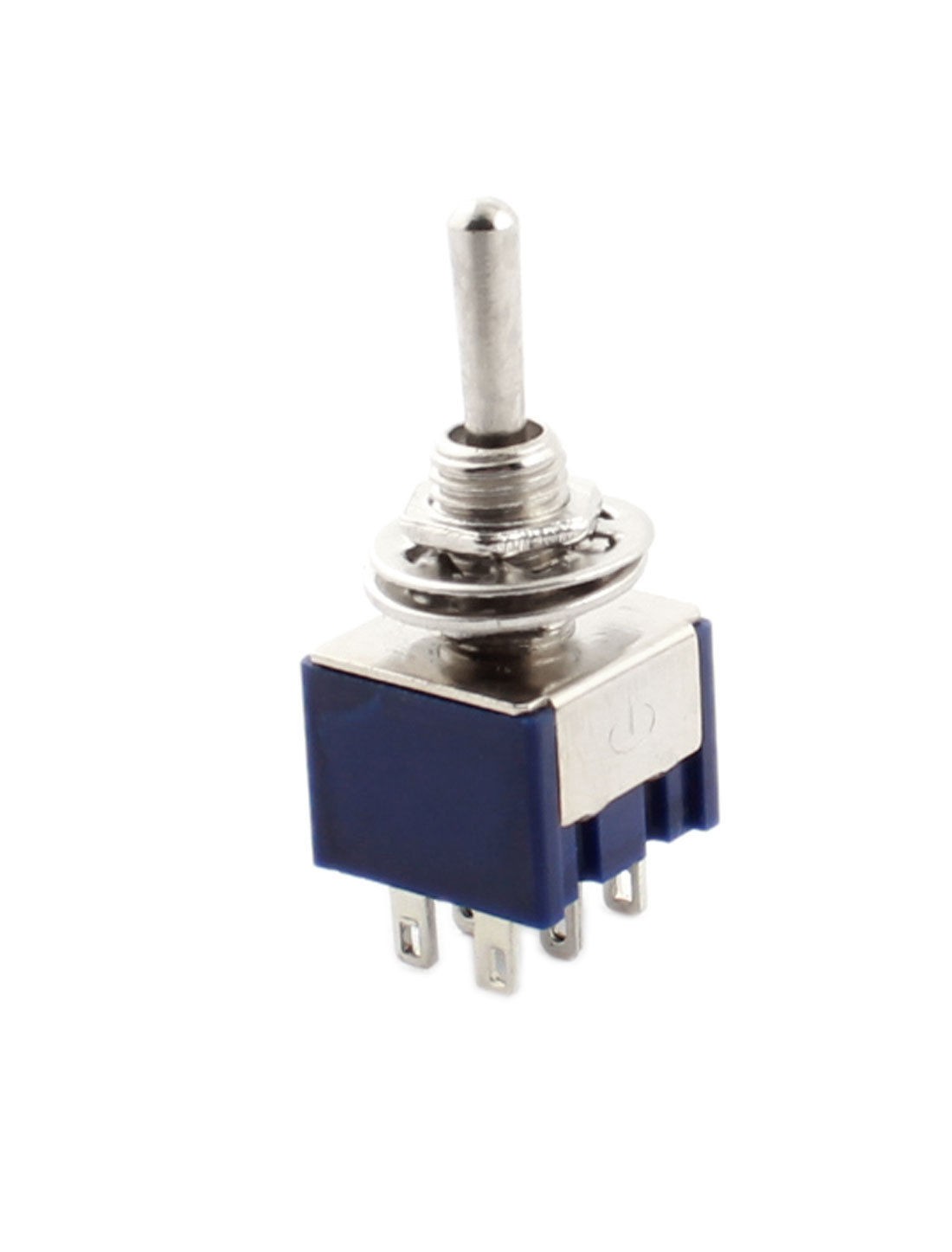 Action Type Latching Pin Number 6 Pins Position 3 Positions (ON/OFF/ON) Type DPDT Thread Diameter 6mm / 0.24" Body Size (Approx.) 13 x 12 x 10mm / 0.51" x 0.47" x 0.4" (L*W*T) Total Height 33mm / 1.3" Material Plastic, Metal Color Blue, Silver Tone Weight 7g Package Content 1 x Toggle Switch - Reviews