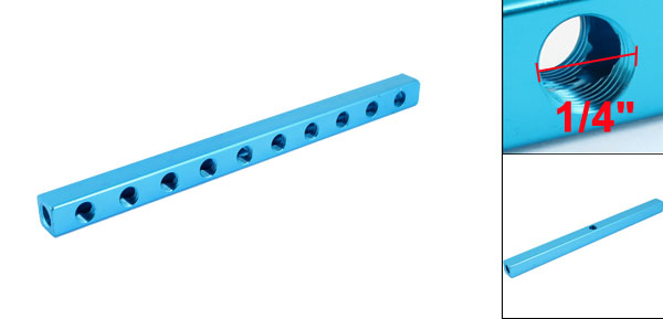 Product Name Manifold Block Threaded Ports Quantity 13 Ports Way 10 Color Blue Material Aluminum Threaded Port Size 1/4"PT Overall Size 29.2 x 2 x 2cm / 11.5" x 0.8" x 0.8" (L*W*H) Weight 206g Package 1 x Manifold Block - Reviews
