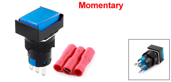 DC 30V 5AThread Dia 16mm/0.63" Total Size(Not Included Pin) 24 x 18 x 31mm /0.94" x 0.71" x 1.2" (L*W *H) External Color Blue, Black Material Plastic, Metal Net Weight 10g Package Content 1 x Rectangle Head Push Button Switch w Crimp Connector