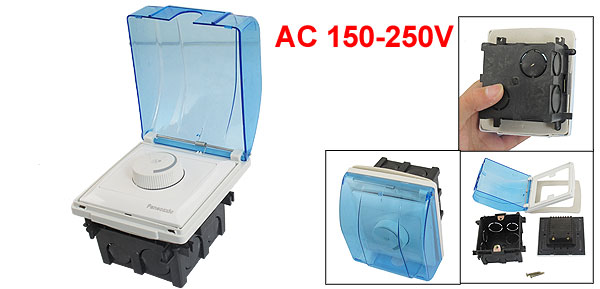 Product Name Wall Panel Dimming Switch Material Plastic, Metal Rated Voltage AC 150-250V Load Power 40-150W Light Control Power 15-60W Dimming Power 15-100W Knob Diameter 38mm/ 1.5" Screw Size 24 x 3.8mm/ 0.94" x 0.15"(L*Dia.) Panel Size 86 x 86mm/ 3.39" x 3.39"(L*W) Base Size 9.2 x 9.2 x 4.8cm/ 3.62" x 3.62" x 1.89"(L*W*H) Cover Size 11.2 x 9.6 x 4.4cm/ 4.41" x 3.78" x 1.73"(L*W*H) Installing Hole Size 7 x 4.3mm/ 0.28" x 0.17"(L*W) Installing Hole Distance 60mm/ 2.36"(Center to Center) Overall Size 11.2 x 9.6 x 9.4cm/ 4.41" x 3.78" x 3.7"(L*W*H) Panel Color White Splash Proof Box Color Blue, Clear Base Color Black Weight 181g Package 1 x Wall Panel Dimming Switch