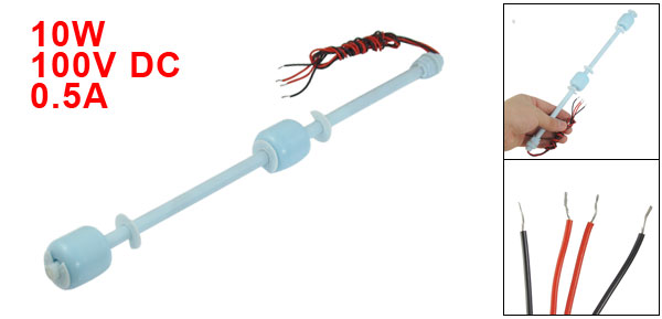 Product Name Float Switch Max Contact Rating 10W Max Switching Voltage 100V DC Max Switching Current 0.5A Max Breakdown Voltage 220V DC Max Carry Current 1.0A Max Contact Resistance 100mΩ Temperature Rating -10 ~ +60 °C / 85 °C Float Ball Material PP Float Body Material PP Float Ball Size(Approx) 25 x 26mm / 1" x 1.1"(L*D) Thread Dia(Approx) 10mm / 0.4" Nut Dia(Approx) 14mm / 0.55" Bottom Clip Dia(Approx) 20mm / 0.8" Body Total Length 32cm / 12.5" Cable Length 31cm / 12.2" Color Blue Net Weight 41g Package Content 1 x Float Switch - Reviews