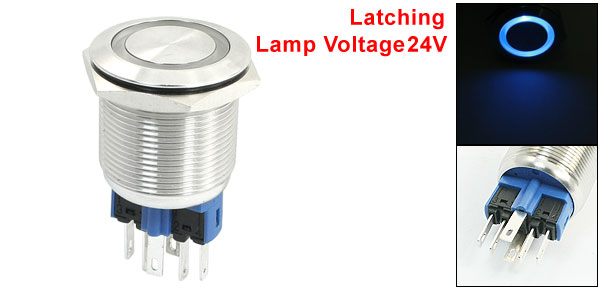 Item Name Push Button Switch Operation Type Latching LED Type Ring-illuminated LED Contact SPDT Pin Number 6 Head Design Flat Head Lamp Voltage 24V Switch Rating 250VAC, 5A LED Color Blue Thread Diameter 22mm/0.87" Total Size 43 x 25mm/1.7" x 1"(L*Max.W) Material Stainless Steel, Electric Parts Housing Color Silver Tone Weight 26g Package Content 1 x Push Button Switch - Reviews