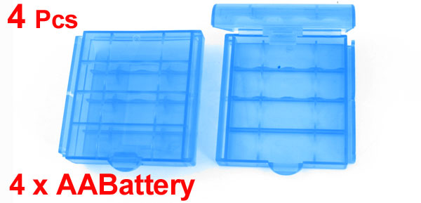 Blue Plastic 4 Capacity AA Battery Holder Case Storage Box Clear 4PCS