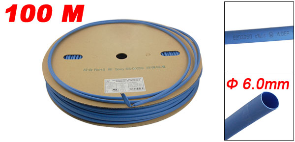 Blue Polyolefin 6.0mm x 100 Meters Heat Shrink Tubes Tubing