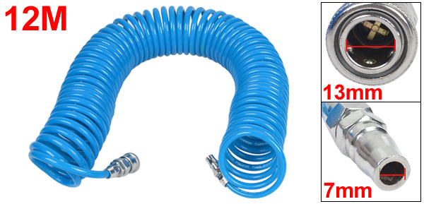Product Name Pneumatic Spiral Hose Material Polyurethane, Metal Length 12m/ 39Ft Working Pressure 6Kg/cm2 Hose Diameter 8 x 5mm/ 0.3" x 0.2"(Outside Dia* Inner Dia) Adapter Diameter 13mm/0.5" Outlet Inner Diameter 7mm/ 0.2" Color Blue Weight 493g Package Content 1 x Pneumatic Spiral Hose - Reviews
