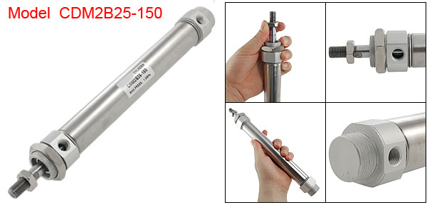 Product Name Air Cylinder Model CDM2B25-150 Action Type Double Action Working Fluid Air Bore 25mm / 63/64" Stroke 150mm / 5 29/32" Max.Press 1.0Mpa Screwed Rod Diameter 9.6mm / 3/8" Screwed End Diameter 25.5mm / 1" Port Diameter 8mm / 5/16" Overall Size 27 x 3.16cm/10.6" x 1.24"(L*Max.W) Material Aluminum Alloy Color Silver Tone Weight 364g Package Content 1 x Mini Air Cylinder - Reviews