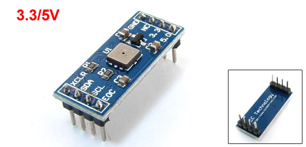 Product Name Digital Pressure Sensor Module Model BOSCH BMP085 Support Voltage Input 3.3/5V Pin Pitch 2.54mm Total Size 29 x 12 x 11 mm / 1.1" x 0.47" x 0.43" (L*W*H) Material Plastic, Copper, PCB Color Blue Weight 4g Package Content 1 x Digital Pressure Sensor Module
