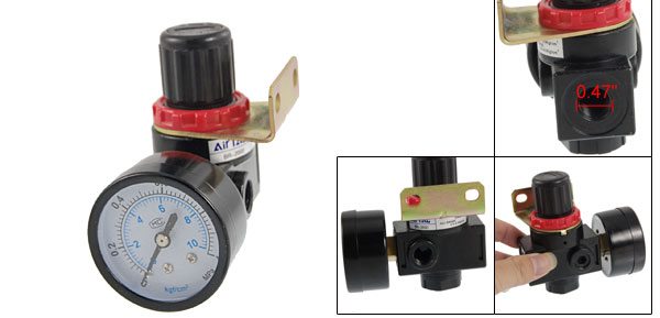 Product Name Pneumatic Regulator Model BR 2000 Material Metal, Plastic Working Medium Air Max. Pressure 9.9kgf/cm2 Adjustable Pressure Range 0.5-9.0kg/cm² Joint Pipe Bore 12mm/ 0.47" Pressure Gauge Connector Dia 12mm/ 0.47" Pressure Gauge Range 0-10 kg/cm² Total Size 9 x 5.5 x 3cm / 3.5" x 2.2" x 1.2"(L*W*H) Pressure Gauge Size 5 x 2.6cm/ 2" x 1"(D*T) Color Black, Red Weight 253g Package Content 1 x Pneumatic Regulator