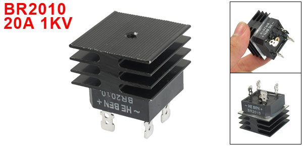 BR2010 20A 1KV Single Phase Bridge Rectifier Half-Wave Black w Heatsink