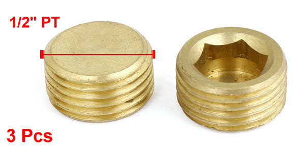 Brass 1/2" PT Male Thread Dia Hex Socket Head Pipe Plug Fitting 3pcs