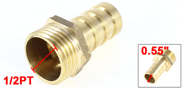 Product Name Barb Fitting Barb Outside Diameter 14mm/ 0.55" Male Thread Diameter 20mm/1/2PT Total Size 38 x 21mm/1.5" x 0.8"(L*D) Color Gold Tone Material Brass Weight 19g Package Content 1 x Barb Fitting - Reviews