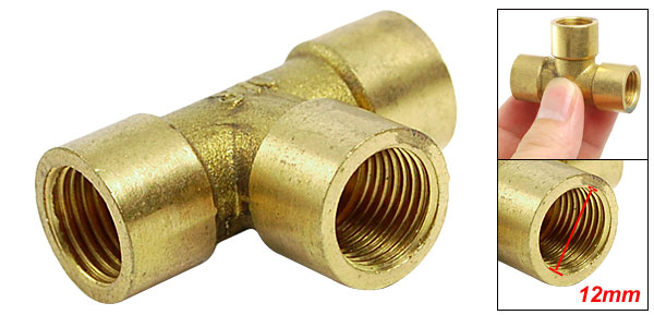 Product Name Brass Female Pipe Tee Material Brass Color Gold Tone Size 42 x 30 x 16.5mm / 1.6" x 1.2" x 0.65" (L*W*D) Thread Diameter 12mm / 0.5" Weight 33g Package Content 1 x Brass Female Pipe Tee - Reviews
