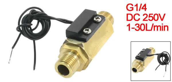 Product Name Water Flow Switch Model SEN-CL41W Type Magnetic Type Max Switch Voltage DC250V Max Contact Rating 70W Max Switch Current 10mA Male Thread Dia (Each End) G1/4 Working Range 1-30L/min Max. Pressure 1.75Mpa Total Size 61 x 26mm/ 2.4" x 1"(L*W) Cable Length 33cm/ 13" Main Material Brass Color Gold Tone, Black Weight 101g Package Content 1 x Water Flow Switch - Reviews