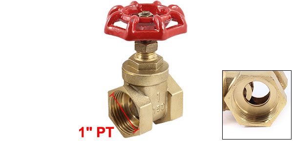 Brass Tone Red Handle Gas Angle Stop Valve Coupling 1" PT Female Thread F/F