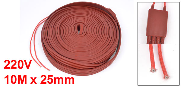 Product Name Heating Cable Material Silicone , Copper, Metal Voltage 220V Cable Width (Approx.) 25mm/ 1" Cable Length (Approx.) 10M / 32.8Ft Color Brick Red Weight 987g Package Content 1 x Heating Cable - Reviews