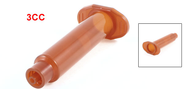 Product Name Dispenser Barrel Material Plastic Color Brown Capacity 3CC Luer Lock Tip Dia 4mm/ 0.16" Tube Size 6.3 x 1.4cm / 2.5" x 0.5"(L*D) Overall Size 7 x 3.2cm / 2.7" x 1.3"(L*W) Weight 4g Package Content 1 x Syringe Dispenser Barrel