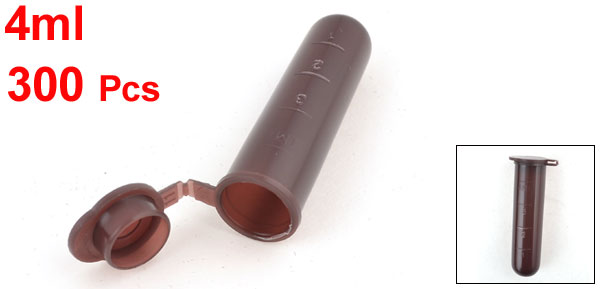 Product Name Centrifuge Tube Material Plastic Capacity 4ml/0.5oz Overall Size (Approx.) 14 x 53mm/ 0.56" x 2" (D*L) Color Brown Purple Net Weight 605g Package Content 300 (±2%) x Centrifuge Tube