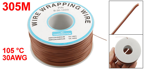 Product Name Wrapping Wire Model P/N B-30-1000 Type 30AWG Wire Size 0.5 x 0.25mm / 0.019" x 0.009"(OD*Wire Dia.) Cable Length(Approx.) 305M / 1000Ft Temperature Rating 105 °C Reel Size 7 x 3.3cm/ 2.7" x 1.3"(D*H) Material Plastic, PVC, Tin Plated Copper External Color Brown, White Weight 155g Package 1 x Wrapping Wire - Reviews