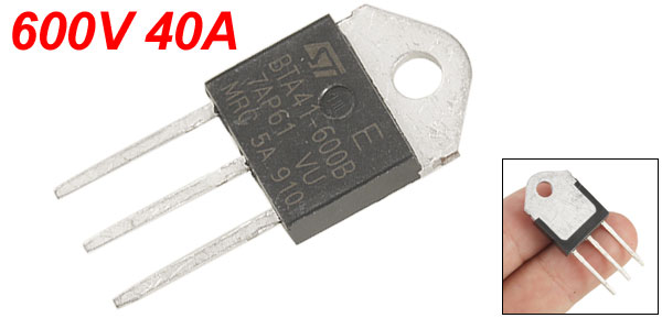Product Name Triacs Model BTA41-600B Voltage 600V RMS on-state Current 40A Mounting Hole Diameter 4mm/ 0.16" Pin Size 16 x 5.04mm/ 0.63" x 0.2" ( L* Pitch) Body Dimension 36 x 15 x 4mm/ 1.4" x 0.6" x 0.16" (L*W*T) Weight 5g Package Content 1 x Triacs - Reviews
