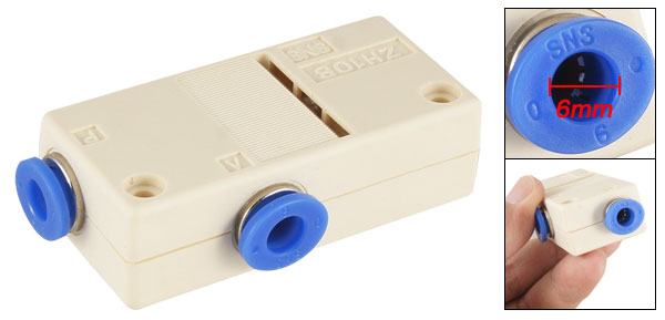 Product Name Vacuum Ejector Type Box Type ( Built-in Silencer ) Connection Type One Touch Type Color Off White & Blue Mounting Hole Diameter 3.2mm/ 1/8" Fit Pipe Diameter 6mm/ 0.24" Total Size 63 x 33 x 18mm/ 2.5" x 1.3" x 0.7" (L*W*T) Main Material Plastic Net Weight 20.3 Package 1 x Vacuum Ejector - Reviews