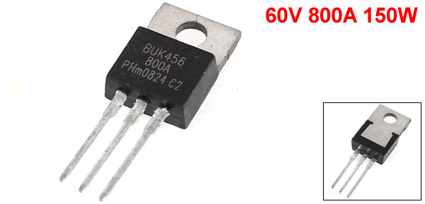 Product Name NPN Transistor Model No. BUK456 Mounted Type Through Hole Power 800A VDS 60V Ptot 150W Mounting Hole Diameter 3.6mm / 0.14" Pin Length 14mm / 0.79" Total Size 29 x 10 x 4mm /1.1" x 0.39" x 0.16" (L*W*H) Main Material Silicon, Metal Main Color Black, Silver Tone Weight 3g Package 1 x NPN Transistor - Reviews