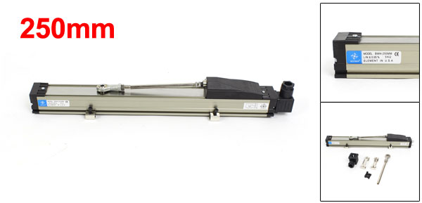 Product Name Linear Position Sensor Model BWH250 Type Slide Sensor Measurement Distance 250mm Resistance 5K Ohm Linearity +/- 0.05% Mechanical Travel 257mm Max Working Speed 10m/s Current <10uA Working Temperature -60 to +150C Body Size 394 x 38 x 32mm /15.5" x 1.5" x 1.2"(L*W*H) Rod End Length 152mm/6" Rod End Hole Inner Dia 6mm/0.24" Screw Dia 4mm / 0.16" Material Aluminum Alloy,Stainless Steel Weight 798g Package 1 x Linear Position Sensor