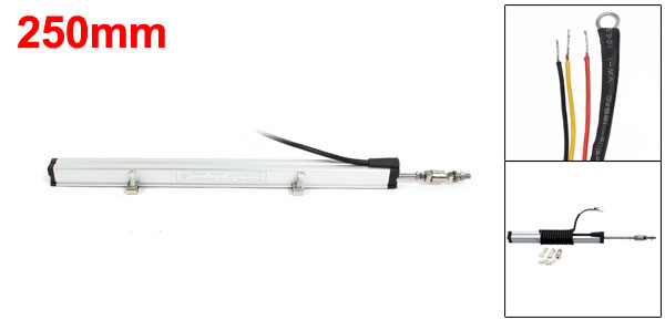 Product Name Linear Position Sensor Model BWM250 Measuring Stroke 250mm Repeated Accuracy 0.01mm Output Wire Quantity 3 Resistance 5K Ohm(+/-10%) Independent Linearity +/-0.05% Mechanical Stroke 253mm Resolution Infinite Max. Working Speed 10m/s Recommended Current <=10uA Recommended Temperature -60-+150C Body Size 298 x 18 x 18mm/11.7" x 0.7" x 0.7"(L*W*H) Wire Length 150cm/5Ft Universal Joint Thread Dia M5/0.2" Rod End Thread Dia M4/0.16" Mounting Screw Dia M4/0.16" Materials Metal, Plastic Net Weight 257g Package Content 1 x Linear Position Sensor
