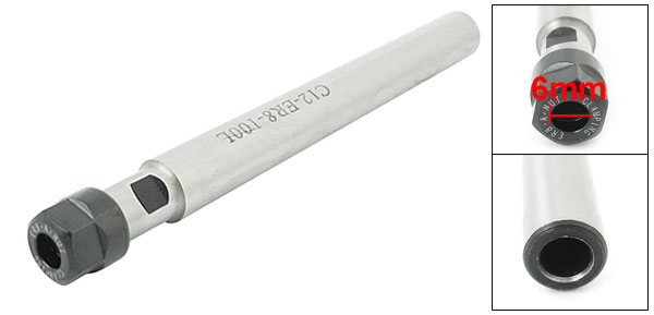 Product Name Straight Collet Chuck Model C12-ER8-100L Shank Diameter 11 mm / 0.47" Clamping Diameter 6 mm / 0.3" Overall Size 125 x 13 mm / 4.9" x 0.5" (L*Max.D) Material Carbon Steel Color Silver Tone, Black Net Weight 89g Package Content 1 x Straight Collet Chuck  - Reviews