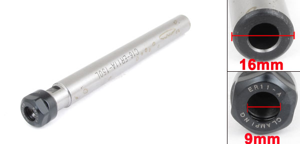 Product Name Straight Collet Chuck Model C16-ER11A-150L Shank Diameter 16 mm / 0.63" Clamping Diameter 9 mm / 0.4" Overall Size 175 x 20 mm / 6.9" x 0.8" (L*Max.D) Material Carbon Steel Color Silver Tone, Black Net Weight 221g Package Content 1 x Straight Collet Chuck - Reviews