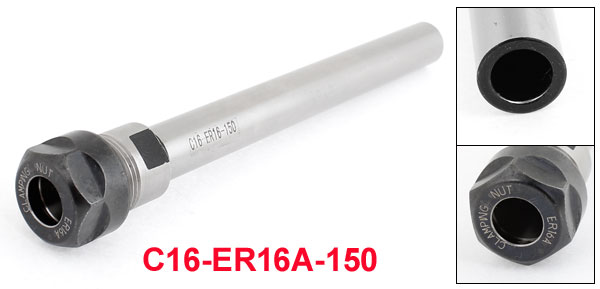 DetailsC16-ER16A-150 Straight Collet Chuck Holder CNC Milling Tool Extension Rod  Product Name Straight Collet Chuck Model C16-ER16A-150 Shank Diameter 16mm / 0.63" Clamping Diameter 12mm / 0.47" Thread Dia 22mm/0.87" Overall Size 2.8 x 19cm/ 1.1" x 7.5" (Max.D*L) Material Stainless Steel Color Silver Tone, Black Net Weight 213g Package Content 1 x Straight Collet Chuck 1 x Case