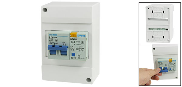 Product Name Leakage Circuit Breaker w Cover Model No. DZ47-63 C40 Material Plastic, Electric Components Rated Voltage AC 400V Rated Current 40A Breaking Capacity 3000A Frequency 50Hz Rated Residual Operating Current( I ^n) ≤ 30mA Rated Residual Non-operation Current( I ^no) ≤ 15mA Residual Current Off-time ≤ 0.1s Total Size (Approx.) 13 x 8.8 x 7cm / 5.1" x 3.4" x 2.7" (L*W*T) Number of Poles 2 Color White, Gray, Blue Weight 378g Package Content 1 x Leakage Circuit Breaker w Cover - Reviews