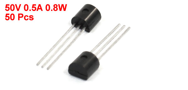 Product Name NPN Transistor Model No. C5342 Continuous Collector Current 0.5A Collector Emitter Voltage 50V Power 0.8W Pin Size 14 x 1mm / 0.55" x 0.04" ( L* Pitch) Total Size 18 x 5 x 3mm / 0.7" x 0.2" x 0.12" (L*W*H) Main Material Silicon Main Color Black, Silver Tone Weight 11g Package 50 x NPN Transistor - Reviews