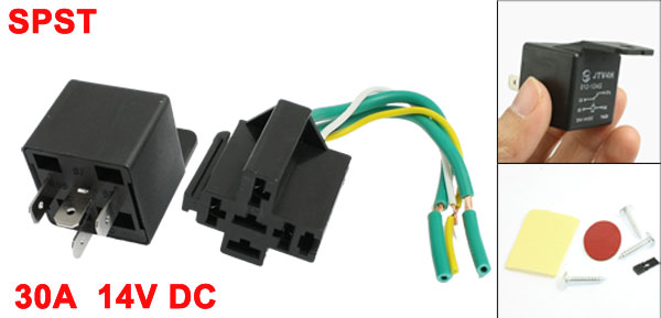 Car Auto Truck SPST 4 Pin Relay Socket Harness Wire 30A 14V DC