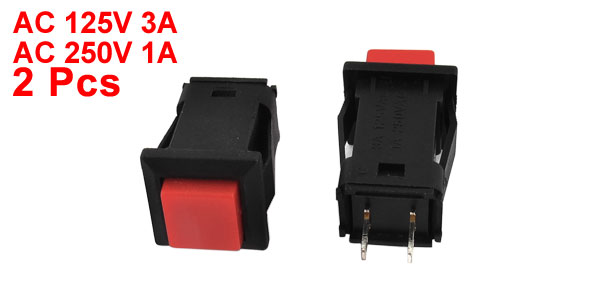 Product Name Push Button Switch Main Color Red, Black Overall Size 1.5 x 1.5 x 3cm/ 0.6 x 0.6 x 1.2inches (L*W*H) Net Weight 7g Terminals 2 Country of Manufacture CHINA Package Content 2 x Push Button Switch Material Plastic, Metal Contact Type Latching SPST Working Voltage AC 125V 3A / AC 250V 1A - Reviews