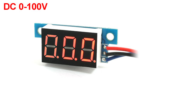 Product Name Digital Voltmeter Power 4-30V Measuring Voltage Range DC 0-100V Display Color Red Digit Number 3 Overall Size (Approx) 3.4 x 1.4 x 0.8cm/1.3" x 0.55" x 0.315"(L*W*T) Wire Lenght 19cm/ 7.5" Color As Picture Show Net Weight 7g Package Content 1 x Digital Voltmeter - Reviews