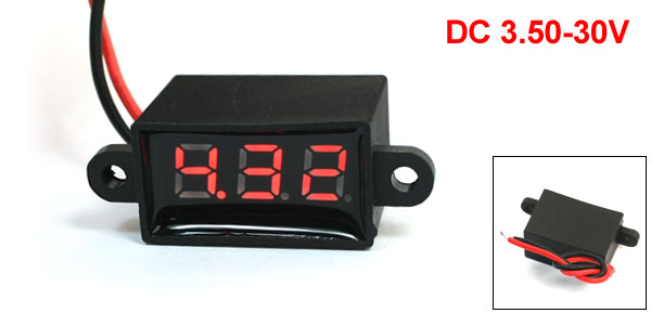 Product Name Mini Digital Voltmeter Measuring Voltage Range DC 3.50-30V Display Size 0.28" Display Red Overall Size (Approx) 4 x 1.7 x 1.3cm/1.6" x 0.67" x 0.51"(L*W*T) Wire Lenght 9cm/3.5" Color Black, Red Net Weight 10g Package Content 1 x Mini Digital Voltmeter - Reviews