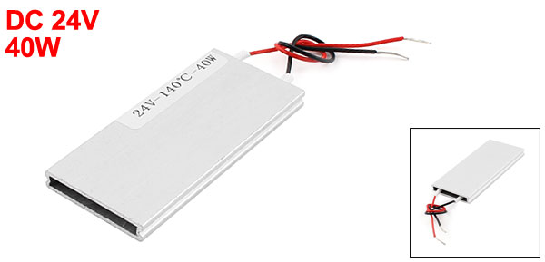 Product Name Heating Element Rated Voltage DC 24V Power 40W Temperature 140°C Wire Length 10cm/4" Total Size 70x30x6mm/2.8" x 1.2" x 0.24"(L*W*T) Material Aluminum, Plastic Main Color Silver Tone Net Weight 23g Package Content 1 x Heating Element - Reviews